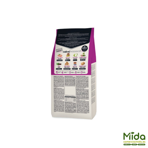 Le métabolisme des chiens de race petite est beaucoup plus rapide que celui d'un chien plus grand. Les chiens mini ils brûlent l'énergie beaucoup plus tôt que les races de chiens plus grandes et, pour cela, ils ont besoin de plus de calories par kilogramme de masse corporelle. Le régime de ce type de chiens doit être complètement nutritif et doit être riche en calories et glucides faciles à digérer. La nourriture spécifique de la gamme Classic d'Ownat évite les glucides dérivés du blé, afin d'éviter les intolérances ou les difficultés digestives chez les chiens mini. La recette contient riz brun qui améliore les mouvements intestinaux.