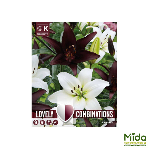 COMBI LILIUM ASIATIC WHITE & BLACK Pack x4 Bulbos. EAN 8711805117184.
