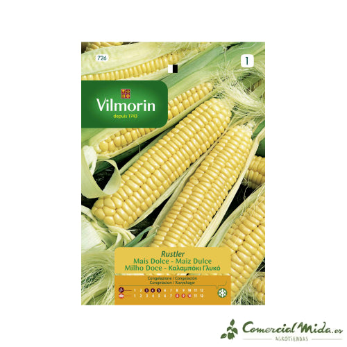 Les semences de Vilmorin filst semences de culture facile. Le maïs doux est un variété tardive de grande vigueur et résistance aux ravageurs et maladies. C'est une plante annuelle qui développe tiges rigides, vigoureuses et longues qui peuvent atteindre 2 mètres de hauteur. Les épis sont grands et peuvent être consommés crus ou cuits, accompagnant des salades et d'autres recettes. Les grains son bonbons et sucrés et il est recommandé de le consommer après avoir été récolté ou de le congeler lorsqu'il commence à blanchir. Il possède grandes propriétés nutritives et c'est une formule riche en sels minéraux, magnésium, phosphore, vitamines essentielles et nutriments. Il présente une proportion d'eau de 78 %, 16 % de glucides, 30 % de protéines et 3,3 % de lipides. Il contient des fibres et est sans gluten. Améliore le transit intestinal, évitez la constipation et améliore le système digestif.