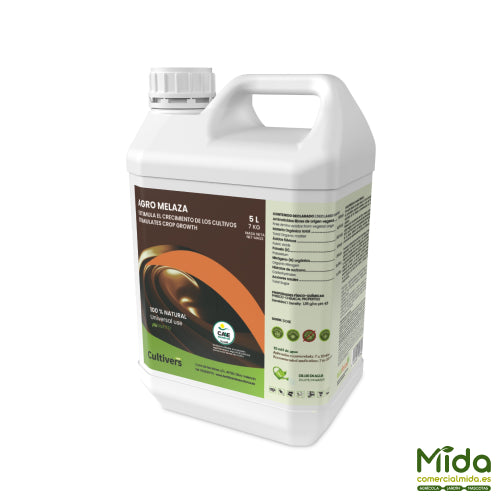 CULTIVERS Agro Melaza es una melaza líquida 100% natural, certificada para uso en agricultura ecológica (CAAE), formulada para estimular el crecimiento del cultivo y mejorar la dinámica del suelo. Su alta concentración de materia orgánica de origen vegetal (42%), junto con aminoácidos orgánicos y glicina/betaína (10%), contribuye a optimizar el metabolismo vegetal y a reducir episodios de estrés por factores externos (bióticos y abióticos). Además, favorece la actividad microbiana beneficiosa, mejora la disponibilidad de nutrientes y ayuda a incrementar la retención de agua y nutrientes, impulsando un desarrollo radicular más eficiente.