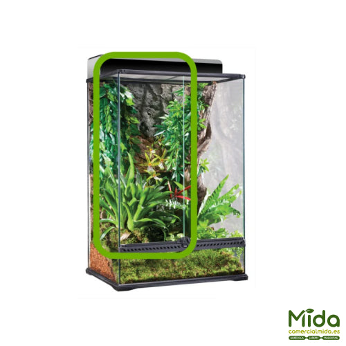 Puerta de cristal de repuesto original Exo Terra para paludarios, pensada para sustituir una puerta dañada, rayada o rota y recuperar el cierre, la seguridad y la estética del terrario. Al tratarse de un repuesto específico por modelo, garantiza un ajuste correcto sobre el marco del paludario y una apertura/cierre fluida, manteniendo el acceso cómodo para el mantenimiento diario (alimentación, limpieza, poda, nebulización) sin comprometer la estabilidad del conjunto. Está disponible en lado izquierdo o derecho (según la puerta a reemplazar) y en dos formatos de paludario: 45x45x90 cm y 60x45x90 cm.