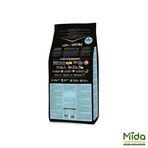 le Je pense Ultra Maxi Adulte d'Ownat est un type de aliments secs qui facilite et améliore la digestibilité dans chiens adultes de grandes races d'une taille de plus de 26/28 kg . La formule est conçue à partir de ingrédients entièrement naturels , avec des proportions élevées de viande fraîche et une teneur limitée en céréales complètes qui améliorera l'assimilation des composants et facilitera le processus de digestion. Offre un apport énergétique élevé et riche en protéines favorise le développement musculaire et osseux . Les ingrédients sont cuit très lentement à basse température pour atteindre la meilleure qualité nutritionnelle. incorpore fruits et légumes frais qui agissent comme puissant antioxydant naturel, graines de lin pour soins des cheveux et de la peau et des plantes aromatiques qui améliorent la bien-être digestif . La rapport calcium et phosphore présente un équilibre optimal pour bon développement dentaire et la mâchoire.