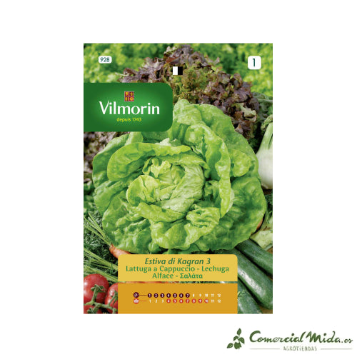 Les semences de laitue Kagraner Sommer de Vilmorin sont des semences d'une variété très résistant à la chaleur et idéales pour les récoltes d'été-automne. Il est recommandé arroser régulièrement pour éviter que la fleur monte et prolonger la période de récolte. Ce type de laitues a un croissance rapide et ils peuvent commencer à être récoltés 45 jours après le semis. La forme du bourgeon est très volumineux et ferme, avec feuilles épaisses et frisées de couleur vert intense et goût délicieux.