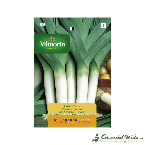 Les semences de Vilmorin de poireau Carentan 3 sont semences de culture facile. Ceci variété rustique et précoce possède un feuillage long, lancéolé et plat avec un bulbe blanc et allongé. Le fût, la partie blanche et allongée, c'est le morceau exploitable. Le le système racinaire est abondant et le pied est court mais très large. Ces plantes se développent dans tous les temps, étant très favorables les températures douces et le climat humide. Il faut contrôler les mauvaises herbes qui peuvent apparaître sur le terrain et former régulièrement de petits tas de terre autour de la plante pour obtenir tiges longues et blanches. La méthode de culture des poireaux peut se faire en semis ou directement sur le terrain.
